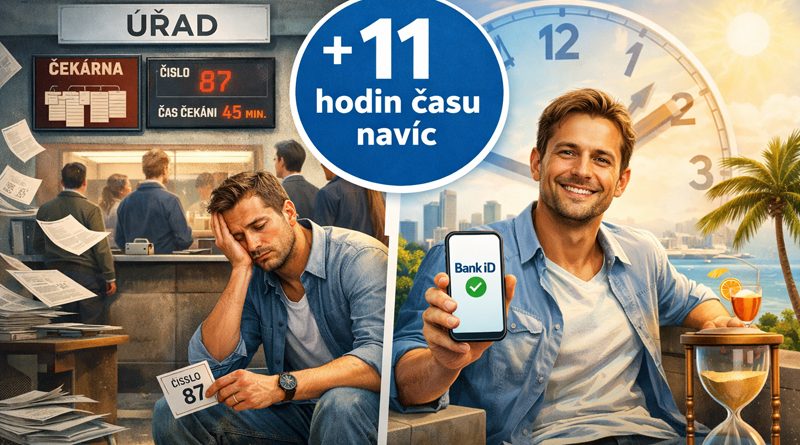 Lidé tráví na úřadech v průměru 20 hodin ročně, největší zátěží přitom nejsou samotné formuláře, ale cestování, čekání a nejistota ohledně vyřízení. Bankovní identita ušetří až 16 hodin ročně.