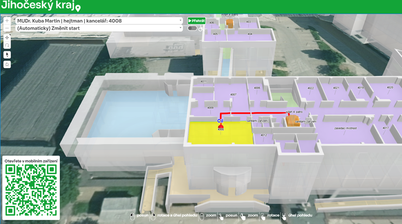 Konec bloudění: 3D navigace vás provede jihočeským krajským úřadem