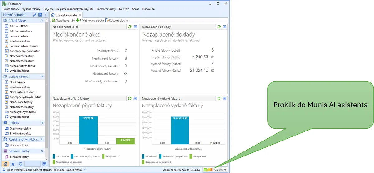 Od verze 3.44.1 se nově stane součástí informačního systému Munis – v podobě tzv. AI asistenta.